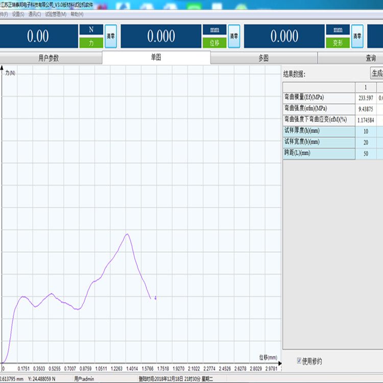 完全開放的試驗方法編輯界面,力-時間、力-位移、位移-時間、抗拉強度-時間、伸長率-時間、應力-應變等曲線圖可任意切換;自動求算拉力、抗拉強度、屈服強度、伸長率、彈性模量、彎曲模量等指標,試驗報告可導入Word或Excel,多次試驗結果可同時展現,一張報表可展現多條試驗曲線,便于用戶對比。
